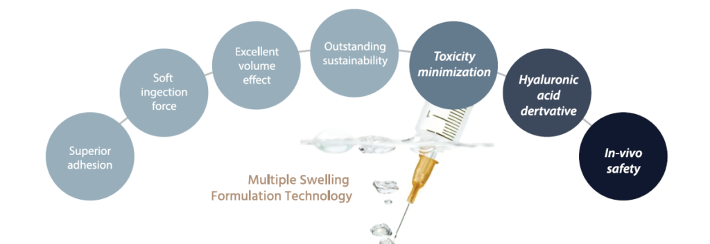 MSFT is a method of blending multiple swelling ratios, and it maintains excellent volume effects while ensuring safety by minimizing crosslinking agents Minimal use of crosslinking agents.