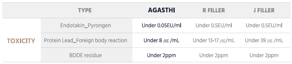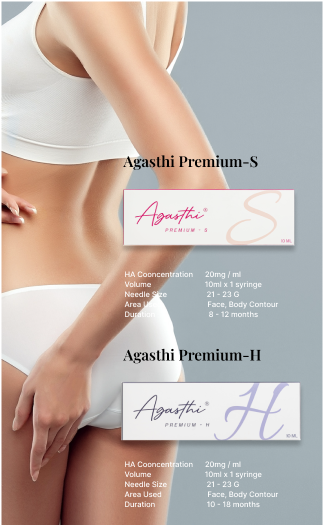 AGASTHI is made up of hyaluronic acid gels with a high ratio of hydrophilic that provides an excellent volume effect.